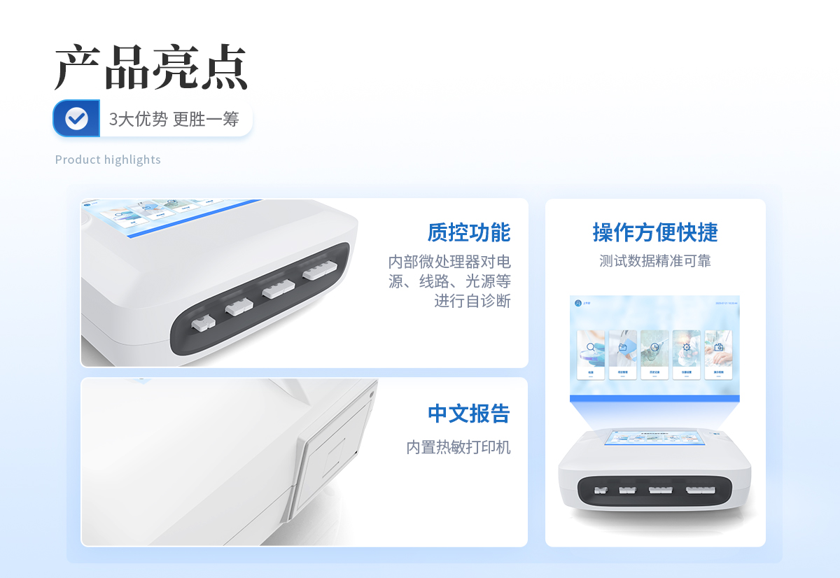 | 1、 Android觸控系統結合大尺寸高清屏幕,界面友好,操作簡單流暢,無需外接設備; | 2、 6通道可以同時檢測不同項目,顯著提升檢測效率,滿足批量樣本快速處理需求; | 3、 二維碼掃描錄入樣本信息,避免人工錯誤 | 4、 8G超大容量內存,支持按日期靈活查詢、預覽、刪除結果,并生成多樣化專業報告。 | 5、 內置熱敏打印機,檢測完成即可現場打印標準報告,提升工作效率。 | 6、 關鍵部件實時自診斷功能,保障儀器長期穩定運行。 | 7、 高速有線/無線網絡及藍牙,構建完善的數據監控平臺,實現數據實時上傳、遠程查詢、統計分析和監管協同。 | 8、 豐富的接口設計,輕松連接電腦、U盤、網絡及上位機系統,支持U盤導出。 | 9、 孵育模塊為特定試紙條反應提供**溫度環境。 | 10、 流線型結構,緊湊輕便,兼顧實驗室耐用性與檢測需求。 | 11、 插卡判斷:檢測卡未插入檢測通道不能檢測 | 12、 內置質控功能,可設備送檢、設備自檢、試劑卡自檢 | 13、 檢測方式:孵育檢測、即時檢測(對檢測數據復檢核實) | 14、 檢測曲線:可以對試劑卡的檢測核驗,防止誤判 | 15、 檢測結果:報告出檢測項目、被測物質的濃度、檢測單位、被檢查單位、檢驗員、檢測時間、檢測限等信息可在觸摸屏上顯示,可通過儀器內置打印機輸出 | 16、 項目管理:支持檢測項目拓展功能 | 17、 界面設置:可修改標題和頁尾信息,靈活展示儀器信息 |