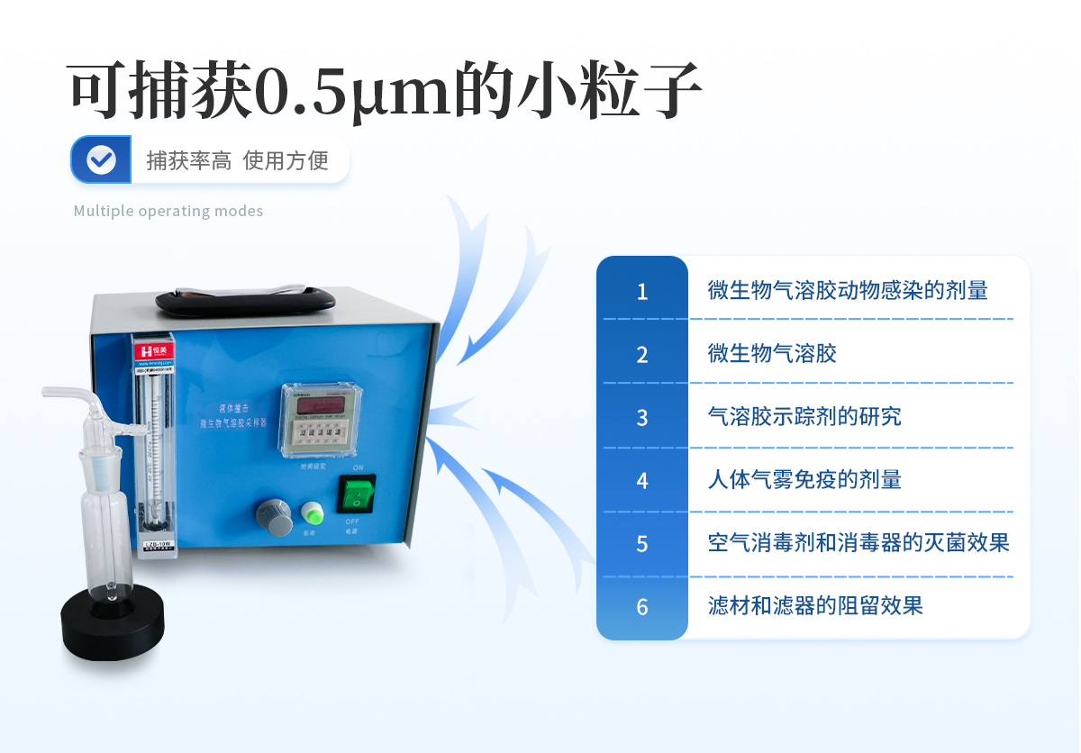 液體撞擊式采樣器尤其適用于實驗空氣微生物學中的濃度測定。常用于微生物氣溶膠動物感染的劑量,微生物氣溶膠存活的回收率,氣溶膠示蹤劑的研究,人體氣霧免疫的劑量,空氣消毒劑和消毒器的滅菌效果,濾材和濾器的阻留效果等實驗中的氣溶膠采樣。