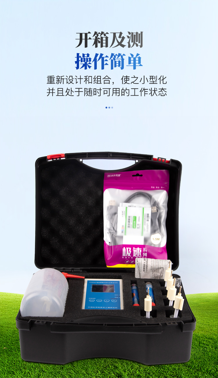 該測試儀根據(jù)土壤腐蝕與防護野外測試工作多年的經(jīng)驗,將所需要用的三十種五十六個各類儀表、電極、試劑、用具等加以重新設(shè)計和組合,使之小型化,并且處于 隨時可用的工作狀態(tài),組裝在兩只小型測試箱中。便于攜帶到野外,現(xiàn)場完成與土壤腐蝕與防護有關(guān)的十個項目的分析和測試。方法合理,數(shù)據(jù)可靠,靈活便捷。