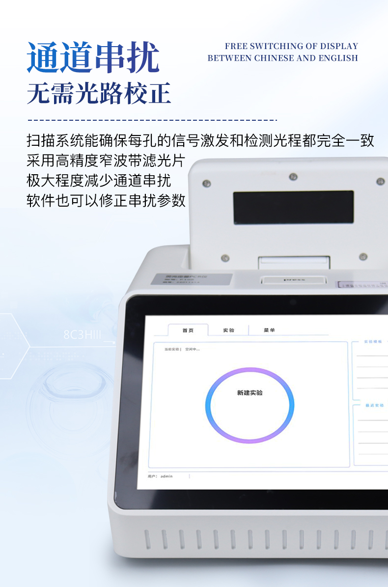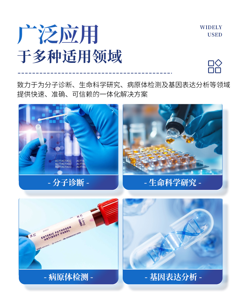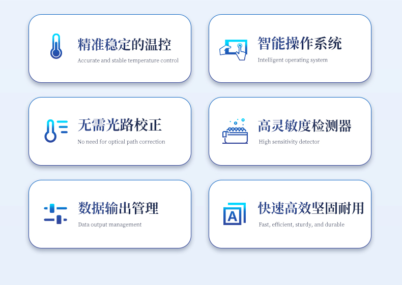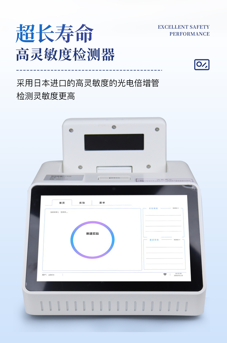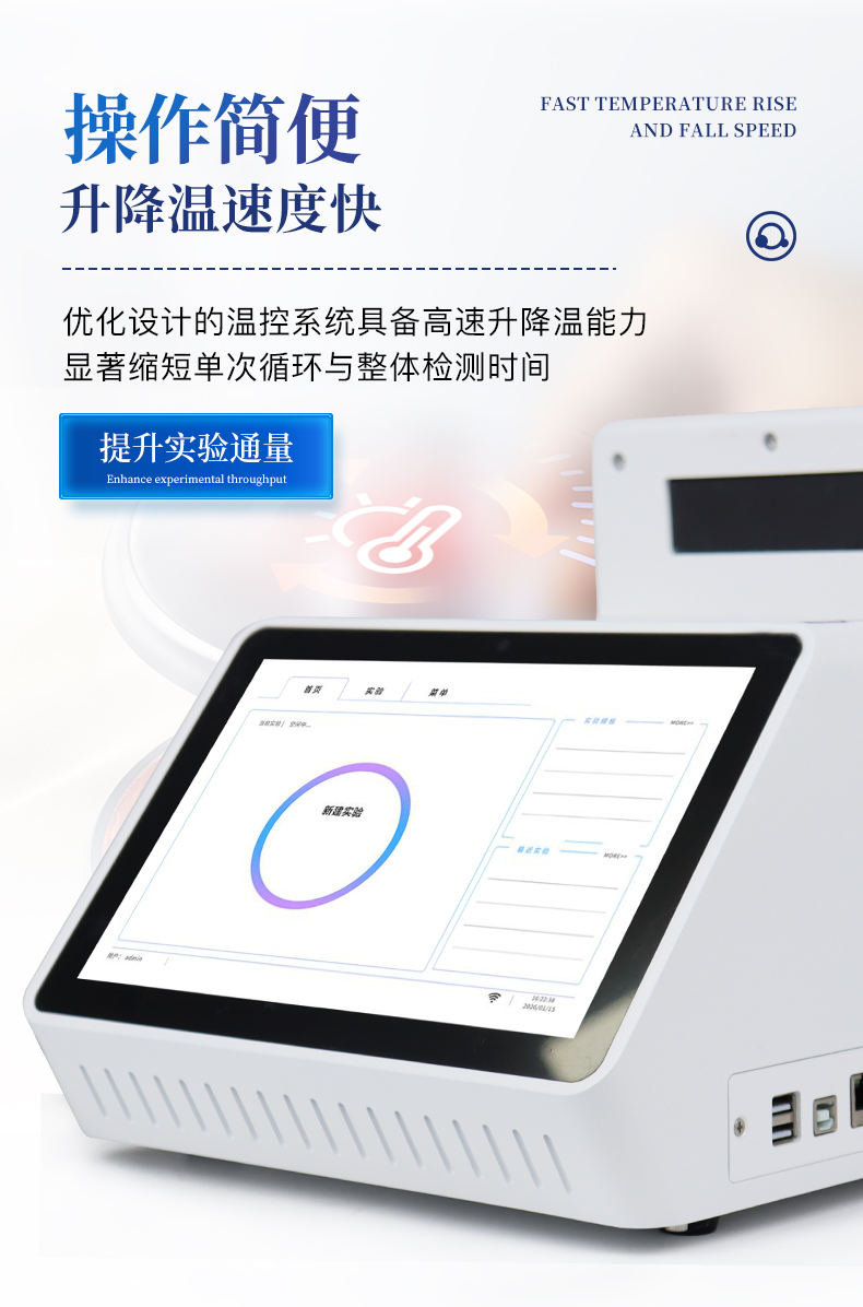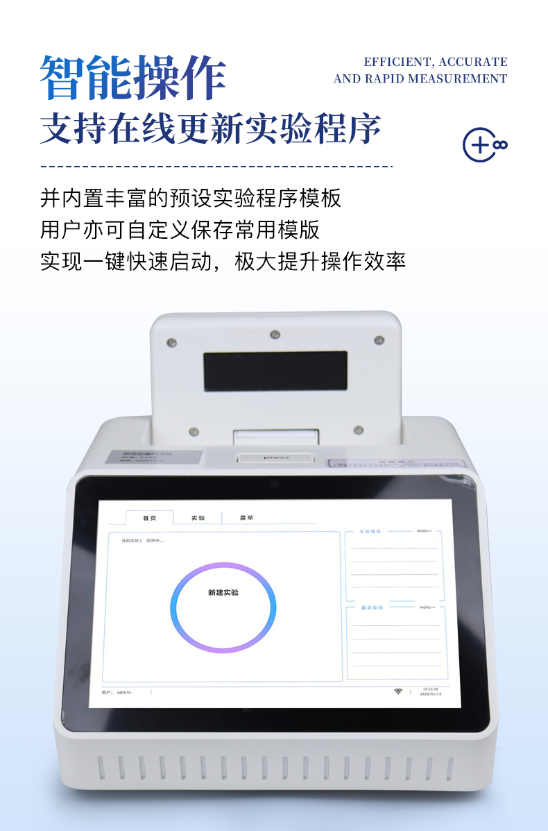 1.智能操作系統,實驗盡在掌握A程序更新與預設:支持在線更新實驗程序,并內置豐富的預設實驗程序模板,用戶亦可自定義保存常用模版,實現一鍵快速啟動,極大提升操作效率。B操作簡單:無論是觸摸屏界面還是電腦軟件,均設計得直觀易懂,新用戶也能快速上手。預置常用程序模板,進一步簡化操作流程。2.精準穩定的溫控與光學核心A長久精準的溫控系統:采用進口***TEC半導體制冷模塊,控溫精準(±0.1°C),孔間溫度均勻性**(≤±0.3°C)。系統穩定性卓越,長期使用性能衰減小,校準周期長達數年,顯著降低維護成本與運營中斷。B免維護的靈敏光學系統:配備單個獨立LED光源與單個獨立光電二極管檢測器,采用超長壽命進口光源,設計壽命期內免維護,無需額外校準或更換,保障檢測結果長期一致性與高靈敏度。C卓越的數據質量:實驗線性相關性高(R2≥0.999),重復性優異(孔間CV值低),確保定量結果準確可靠,數據置信度高。3.**便捷的數據與輸出管理A多重數據導出方式:支持通過USB存儲設備直接拷貝,或經由Wi-Fi無線網絡傳輸數據至本地服務器或云端,方便靈活,滿足各類實驗室數據管理習慣。B豐富的報告導出與打印:支持生成并導出多種格式(如PDF、Excel)的實驗報告。儀器兼容USB熱敏打印機、藍牙無線打印機及常規A4打印機,可直接在儀器上或通過電腦一鍵導出并打印專業報告,便于結果存檔與即時分享。4.快速**與堅固耐用A升降溫速度快:優化設計的溫控系統具備高速升降溫能力,顯著縮短單次循環與整體檢測時間,提升實驗通量。B超長使用壽命:核心部件均選用工業級耐用材料與設計,整機運行穩定可靠,致力于為用戶提供長久的投資回報。