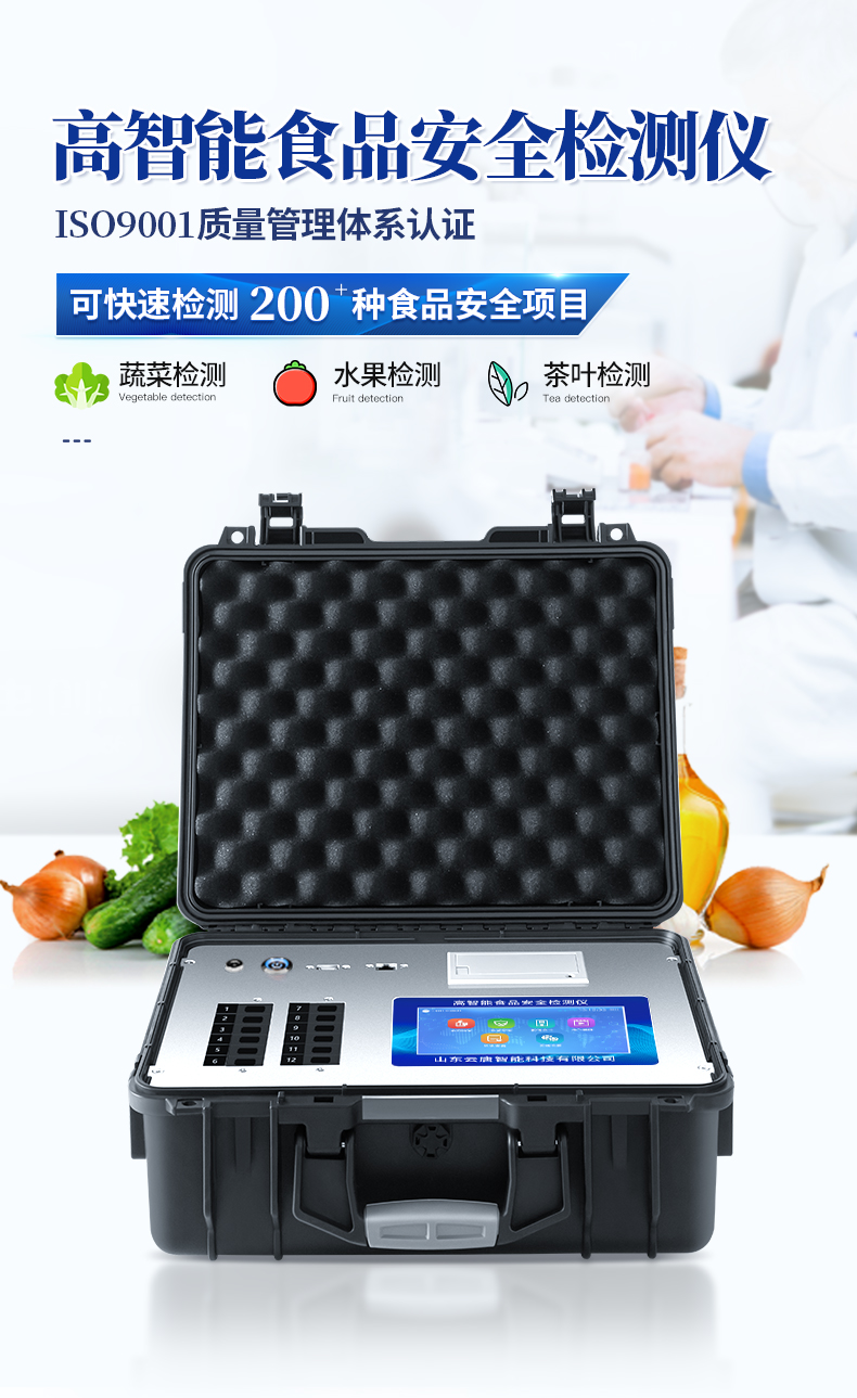 多功能食品安全檢測儀可快速檢測200多項目,包含非食用化學物質、濫用食品添加劑、農藥殘留、獸藥殘留、重金屬、病害肉、營養強化劑、抗生素類殘留、激素類殘留、真菌毒素類殘留、化學類殘留等現場的定性定量檢測。該多功能食品安全檢測儀為集成化食品安全快速檢測分析設備,廣泛應用于市場監管局、檢測中心、衛生監督部門、農業部門、院校及各單位食堂、食品肉產品深加工企業、商超市場、司法部門、餐飲機構、養殖場、屠宰場、檢驗檢疫部門等單位使用。