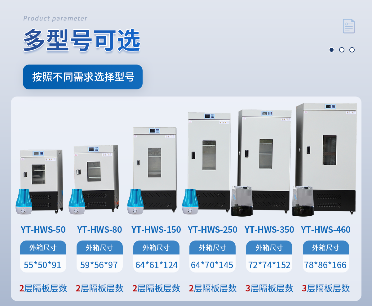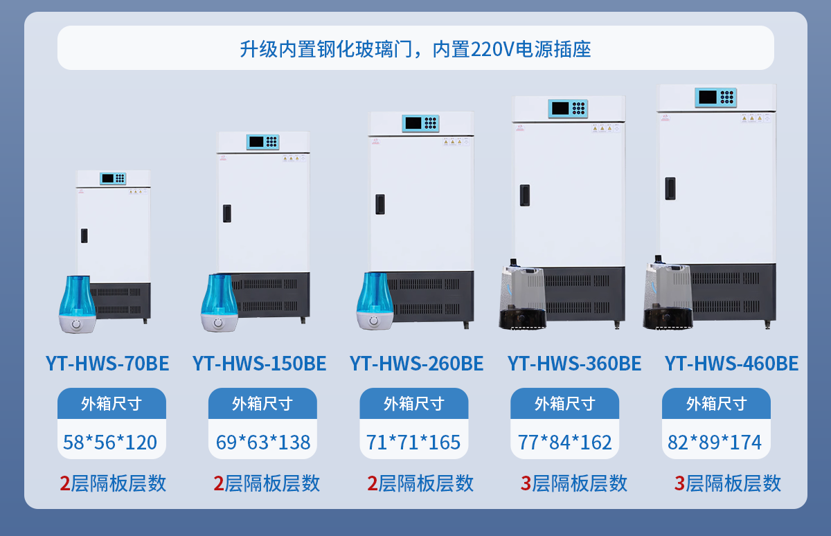| 工作容積:150L | 控溫范圍:0-70℃(設定溫度≤10℃時,環境溫度要低于30℃) | 程序控制:24段 | 溫度分辨率:0.1℃ | 溫度波動度:±0.5℃ | 控濕范圍:30%-95% | 濕度波動:±5%RH | 定時范圍:0-99小時59分鐘 | 加熱功率:600W | 內箱尺寸 寬*深*高(cm):52*39*73 | 外箱尺寸 寬*深*高(cm):69*64*138 | 隔板層數(標配):2層 | 層間隔/mm:64 | 卡槽層數:8 | 加濕器容量(標配):3L | 單層隔板承重:<15kg | 底部總承重 :25kg | 電壓:AC220V 50HZ | 整機重量:80kg | 內膽材質:8K鏡面不銹鋼 | 箱體材質:冷軋鋼板表面采用抗腐蝕高溫噴塑工藝 | 旗艦款升級項目:升級內置鋼化玻璃門,內置220V電源插座。 |