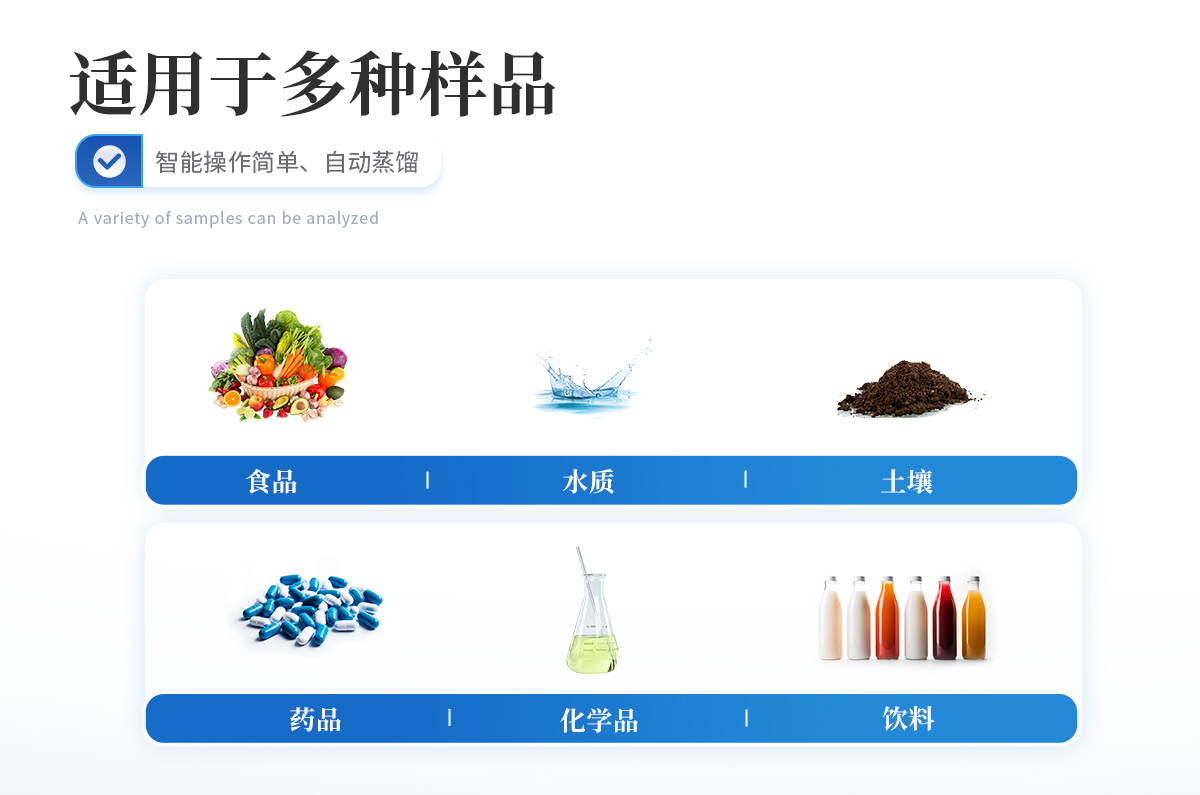 | GB/T 5750.5-2023生活飲用水標準檢驗方法 無機非金屬指標; | HJ 484-2009水質 氰化物的測定 容量法和分光光度法; | HJ 503-2009水質 揮發酚的測定 4-氨基安替比林分光光度法; | HJ 502-2009水質揮發酚的測定 溴化容量法; | HJ 1226-2021 水質硫化物的測定 亞甲基藍分光光度法; | HJ 1191-2021 水質疊氮化物的測定 分光光度法; | HJ 535-2009水質氨氮的測定 納氏試劑分光光度法; | HJ 536-2009水質氨氮的測定 水楊酸分光光度法; | HJ 537-2009水質氨氮的測定 蒸餾-中和滴定法; | HJ 745-2015土壤 氰化物和總氰化物的測定 分光光度法; | HJ 998-2018土壤和沉積物 揮發酚的測定4-氨基安替比林分光光度法; | HJ 833-2017土壤和沉積物 硫化物的測定 亞甲基藍分光光度法; | HJ 717-2014 土壤質量 全氮的測定 凱式法; | GB 8538-2022食品安全國家標準 飲用天然礦泉水檢驗方法; | GB 5009.36-2023食品安全國家標準 食品中氰化物的測定; | GB 5009.225-2023食品安全國家標準 酒和食用酒精中乙醇濃度的測定; | GB 5009.266-2016食品安全國家標準 食品中甲醇的測定; |